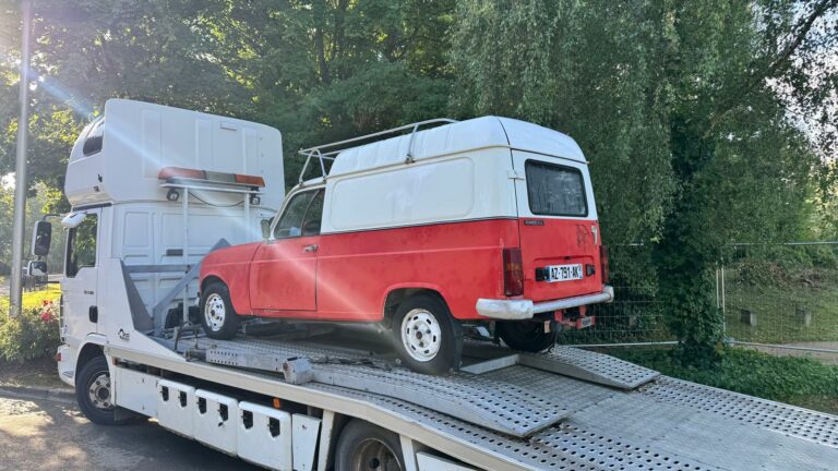 La première étape fut la récupération de la 4L F6 près de Paris et direction le garage pour faire un premier diagnostique des réparations a prévoir.